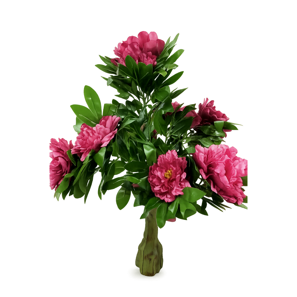 Copac artificial decorativ cu flori de bujor rosu, ideal pentru decorarea spatiilor interioare. Designul realist imita aspectul natural al florilor de bujor, oferind un decor elegant si rafinat fara a necesita intretinere.