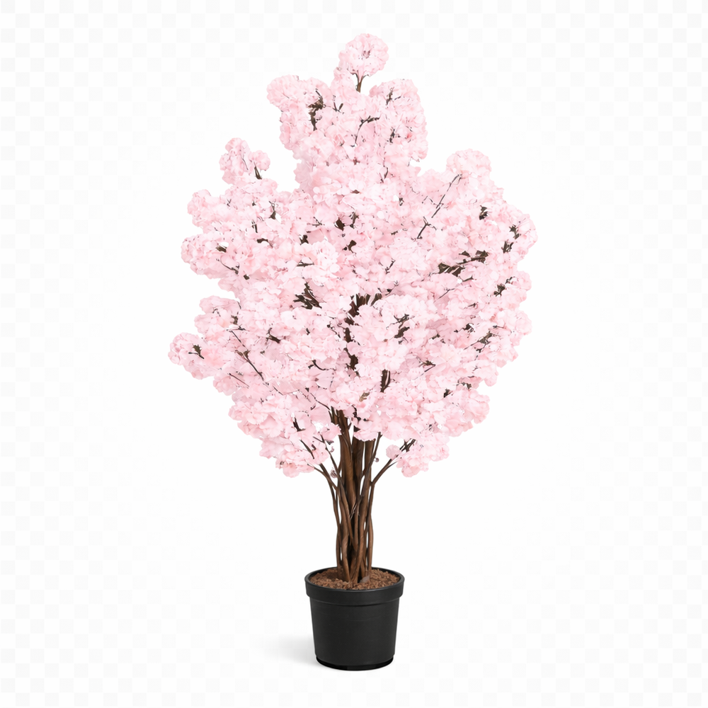 Copac artificial spectaculos cu flori de piersic si vite impletiite in ghiveci — o piesa decorativa unica, cu un design elaborat ce combina arborele cu flori delicate si vite decorative rasucite. Cu o inaltime impresionanta de 180 cm, este una dintre cele mai mari si mai spectaculoase piese decorative artificiale.