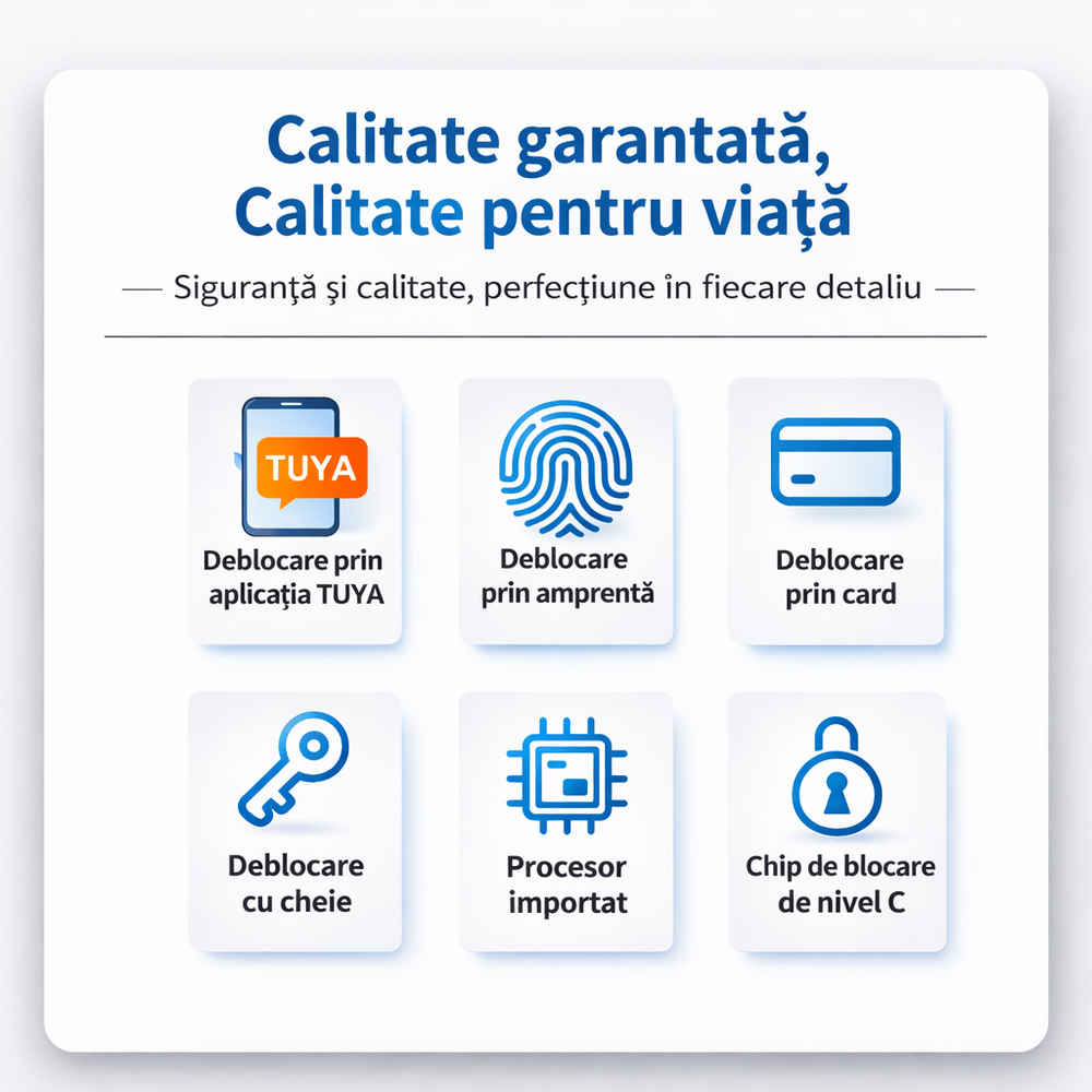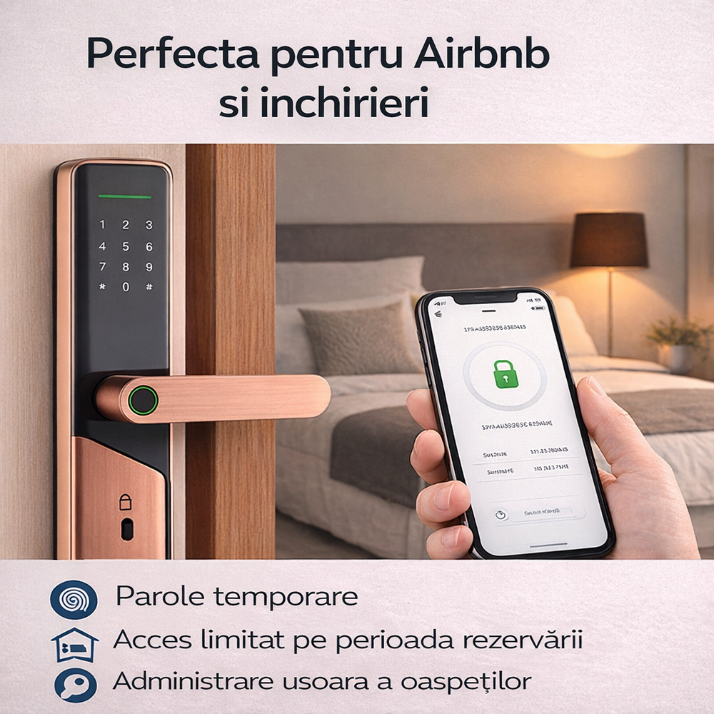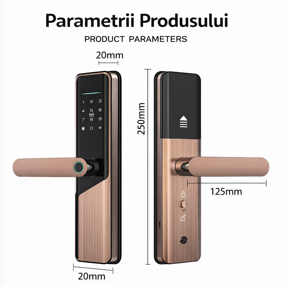 Transforma-ti usa cu incuietoarea inteligenta LUBAN! 5 metode de deblocare, recunoastere biometrica precisa si design premium. Perfecta pentru dormitor, birou sau camere de hotel, oferind control total si siguranta moderna prin aplicatia Tuya.